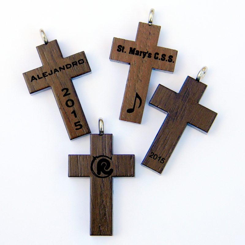 This small maple heart is laser cut and hand glued. The cross is made of black walnut. With a traditional shape, this model is also available with a dove (refer to model 28D).